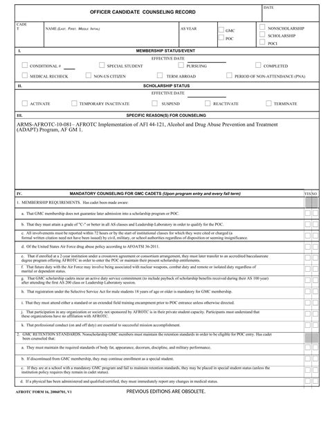 Army Officer Counseling Form Templates at
