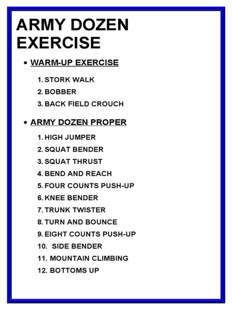 Army Daily Dozen. Web army da administrative publications and forms by the army publishing directorate apd. Web the daily dozen exercise regimen camp was a proponent of exercise, and not just for the athletes he coached.