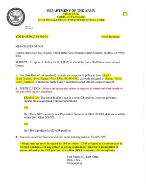 Army Etp Memo Example. Exception to policy for training mmancer avenue, fort. Request for age/active federal service exception to policy or prerequisite/ets waiver.