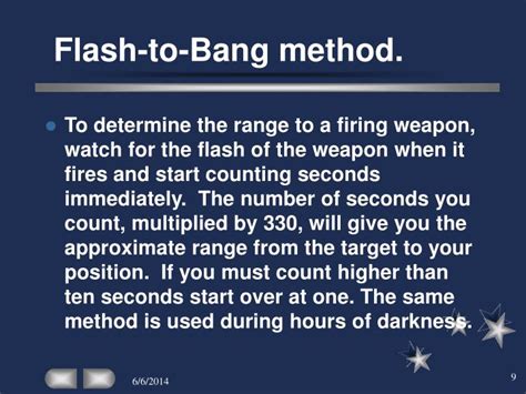 Flash To Bang Method Army. Some of these methods are: If you see lightning, begin counting seconds.